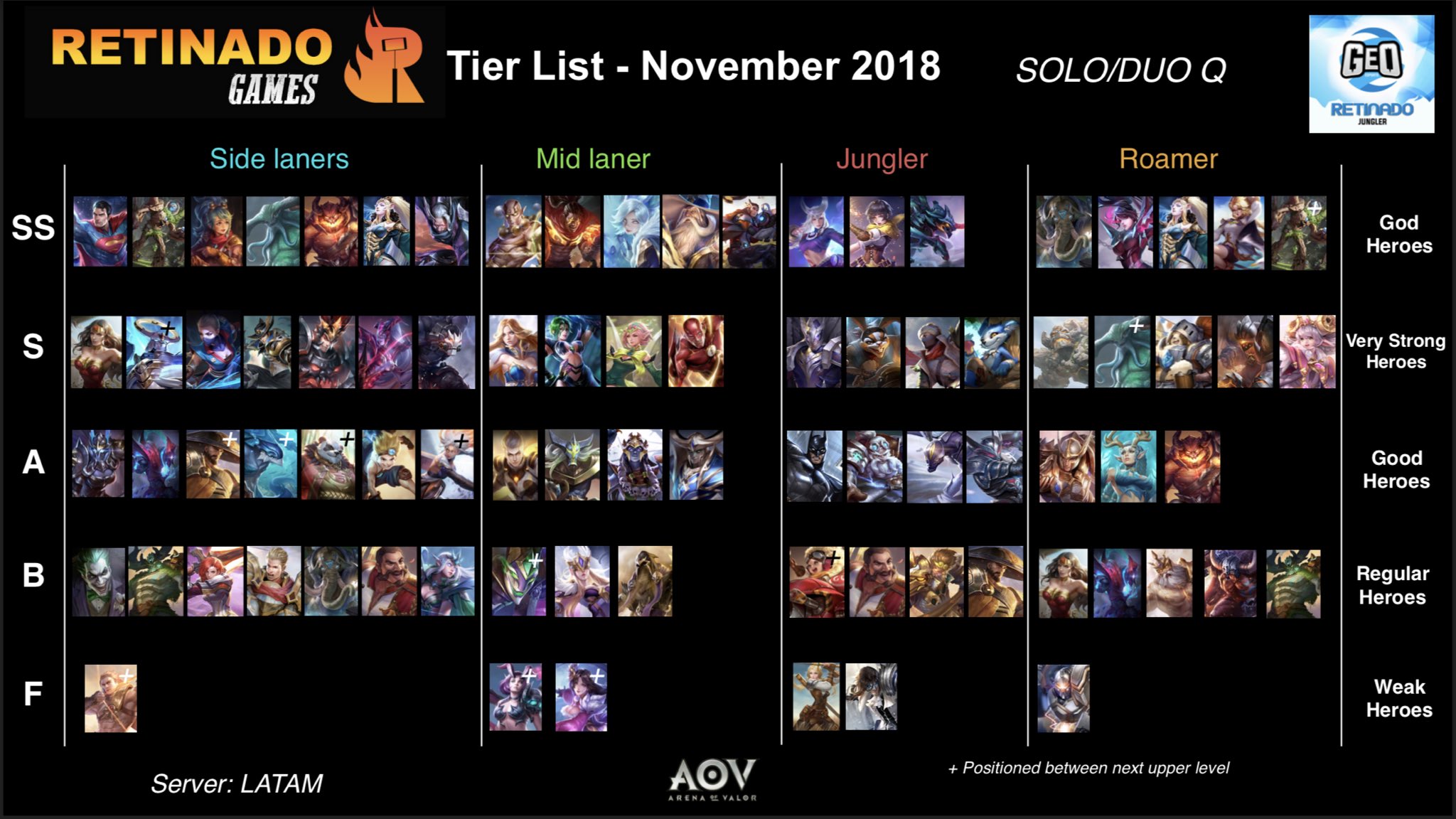In our arena of valor tier list for july 2020 we are going to discuss how the new patch affected meta heroes in the game. The jungle is populated by neutral monsters that grant experience and gold when defeated. Use filters at the top of the page for aov tier list placements. Aov batman is played in the jungle and has a lot more potential in that role than he would in any other lane. Check out our patch notes breakdown here. Some monsters additionally grant the player or team a powerful buff that can turn the tide of the match.