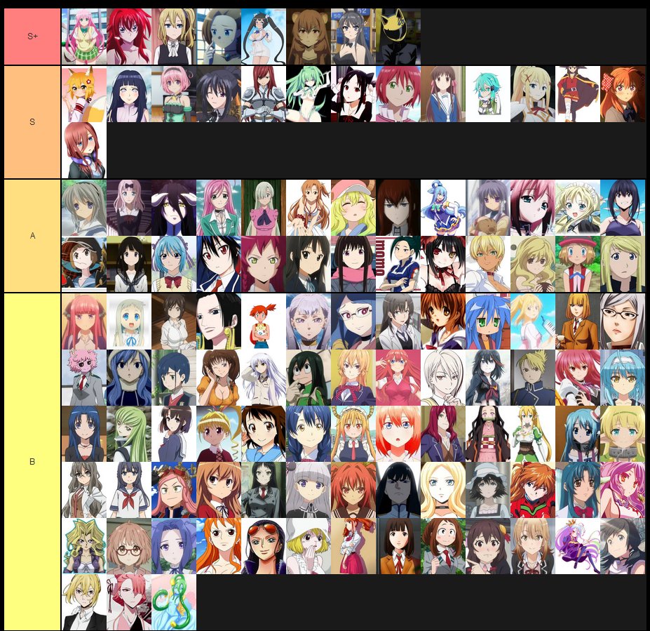 My waifu tier list. So many anitubers are making a waifu tier list but theyre all wrong. Waifus sporting the best love to trash ratio. The worst of the worst by trash ratio. Drag the images into the order you would like. Summer its not waifu tier only because im not fan of her as a character. Chose from hundreds of custom templates or create your own.